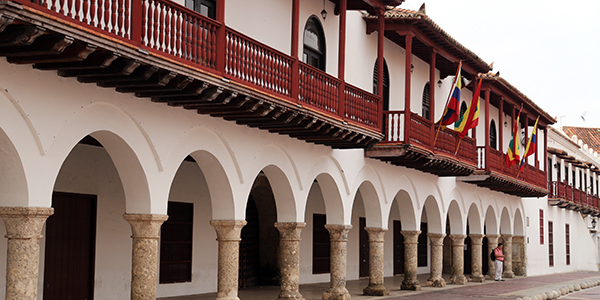 A arquitetura colonial espanhola, porém, é mais imponente que a portuguesa, com pés direitos altos, grandes espaços internos e varandas floridas que tornam cada casa, cada esquina em uma foto em potencial. A cidade é cheia de monumentos, igrejas, praças e bandeiras de Cartagena e da Colômbia.