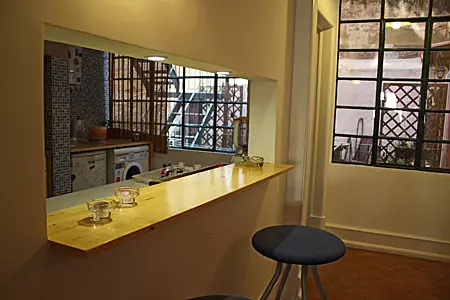 O apê: loft com pé direito alto e pátio interno num prédio comunista dos anos 50. Térreo. 100 euros.