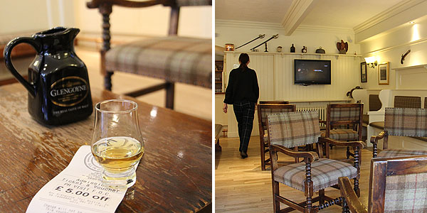 A primeira parte da visita acontece em um salão com vista para o lago, onde os visitantes são recebidos com uma dose de boas-vindas do whisky 12 anos da casa e com um cupom de desconto para usar na loja da destilaria, mais tarde.