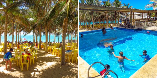 Ambas têm mesas entre coqueiros e área coberta de restaurante. As instalações são confortáveis (têm restaurantes, banheiros, piscina para crianças). Saiba, porém, que o trecho fotogênico da praia, com falésias, está a 10 minutos de caminhada pela areia.