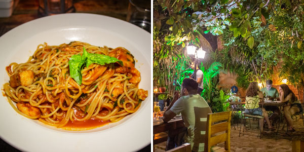 O restaurante mais charmoso da vila tem chão de areia, luz de velas e música boa ao vivo: é o Mezza Luna. Um caminho de fundos de garrafa enterradas leva você de um bequinho na Broadway até a sua mesa no pátio.