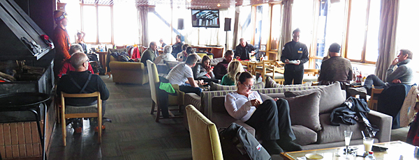 Mesmo que você tenha comprado o combo gôndola + fast-food, acho que vale a pena dar uma descidinha e vir tomar um chocolate no Lounge e ver como é se hospedar num resort de ski. (Depois, pegue a gôndola de volta para se despedir lá de cima.)