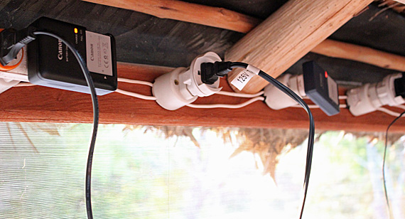 Celular não pega, mas há tomadas suficientes para recarregar as baterias das câmeras e iPods.