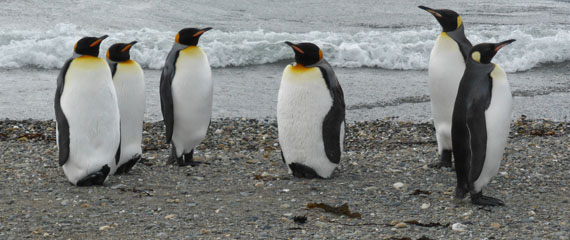 A não ser que você tenha a “sorte” que nós tivemos… A caminho do Lago Fagnano, paramos numa praia: Caleta María. Ali encontramos companheiros inesperados: doze pingüins-reis, vindos ninguém sabe de onde. Enquanto os guias cuidavam de montar um belo picnic para o nosso almoço, aproveitamos pra “brincar” com os animais, sem limites.